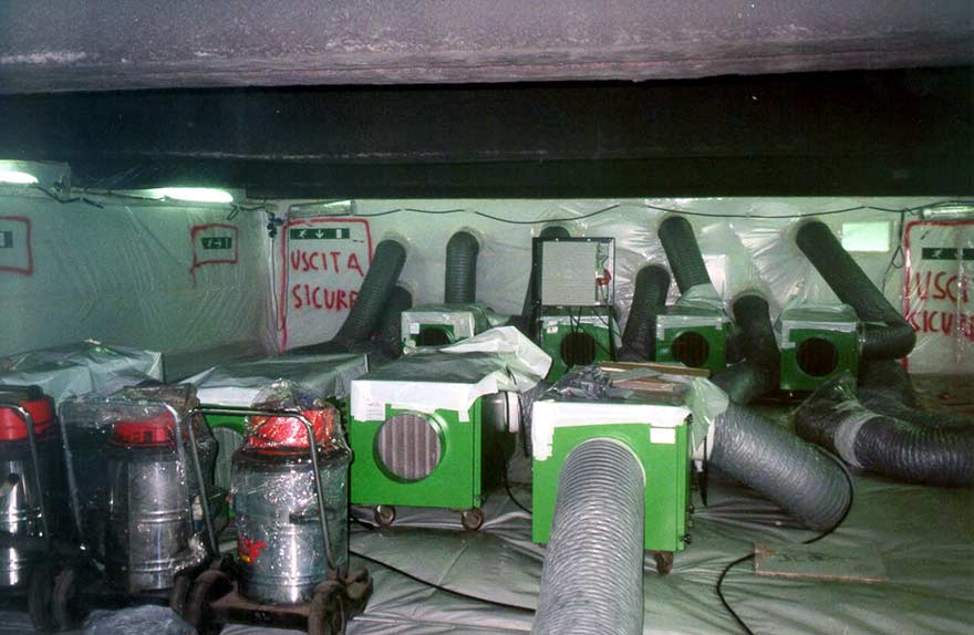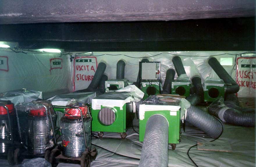 La presenza dell’amianto negli edifici civili, soprattutto quando lo si trova in matrice altamente friabile applicato a spruzzo sulle strutture o in matrice, sempre friabile, cementizia e/o gessosa sugli impianti tecnologici, può rappresentare un grave rischio per gli occupanti e per eventuali terze persone che devono intervenire sulle installazioni per manutenzione o sulle strutture per ristrutturazione totale o parziale dell’edificio stesso che deve poi essere nuovamente abitato. I livelli di eccellenza operativa e la qualità dei risultati ottenuti da ESSE A3 derivano da anni di applicazione del know-how aziendale nella bonifica in ambiente confinato dell’amianto friabile spruzzato, ad oggi applicata per la rimozione di 500.000 mq circa di amianto floccato spruzzato su superfici di immobili di varie tipologie, siti sul territorio nazionale ed estero, quali: banche, teatri, centri commerciali, parcheggi, scuole, ospedali, piscine, palestre, ecc.