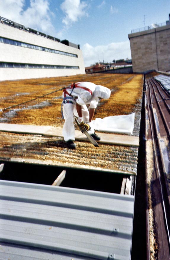 In questi casi, come si accennava sopra, l’aspetto sicurezza nell’esecuzione delle opere rappresenta un pericolo ancora maggiore della presenza dell’amianto nel manufatto, soprattutto quando l’intervento deve essere eseguito in presenza di rischio di caduta dall’alto per le persone e occorre quindi prendere tutte le cautele e misure di sicurezza necessarie ed atte ad evitare o limitare al massimo questo importantissimo rischio di vita per le persone che eseguono i lavori, mediante l’adozione di tutti i possibili e necessari presidi di sicurezza quali ponteggi di facciata, parapetti, piani di lavoro in quota, reti di protezione, cavi di acciaio per l’ancoraggio dei dispositivi anticaduta con arrotolatori ecc. (D.Lgs. 81/08).