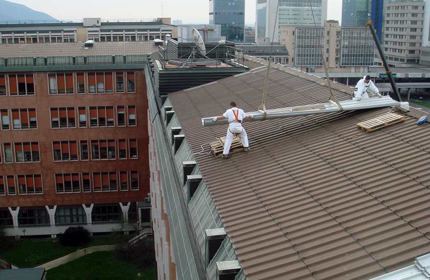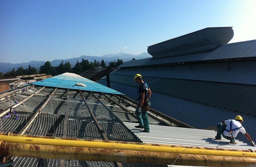 A Uno si propone con successo anche per il completo rifacimento della copertura al termine della bonifica, operando con le più moderne tecnologie applicative relativamente ai materiali sostitutivi (fibrocemento ecologico, lamiere grecate in acciaio, rame e alluminio, pannelli sandwich coibentati, lattonerie, torrini di aerazione, evacuatori di fumo e di calore, ecc.), occupandosi altresì, in parallelo, della realizzazione delle più ampie opere di sicurezza (linee vita) e dell'installazione dei più moderni impianti fotovoltaici (cfr. capitolo delle "attività nel campo edile o affine").